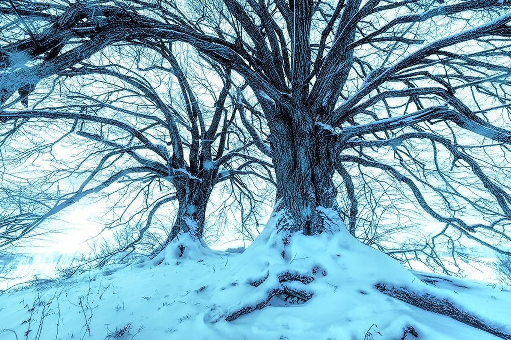 Tapeta dotek stromů s přicházející zimou
