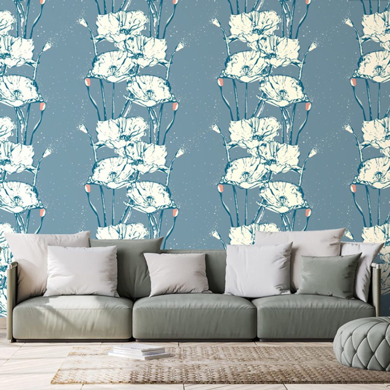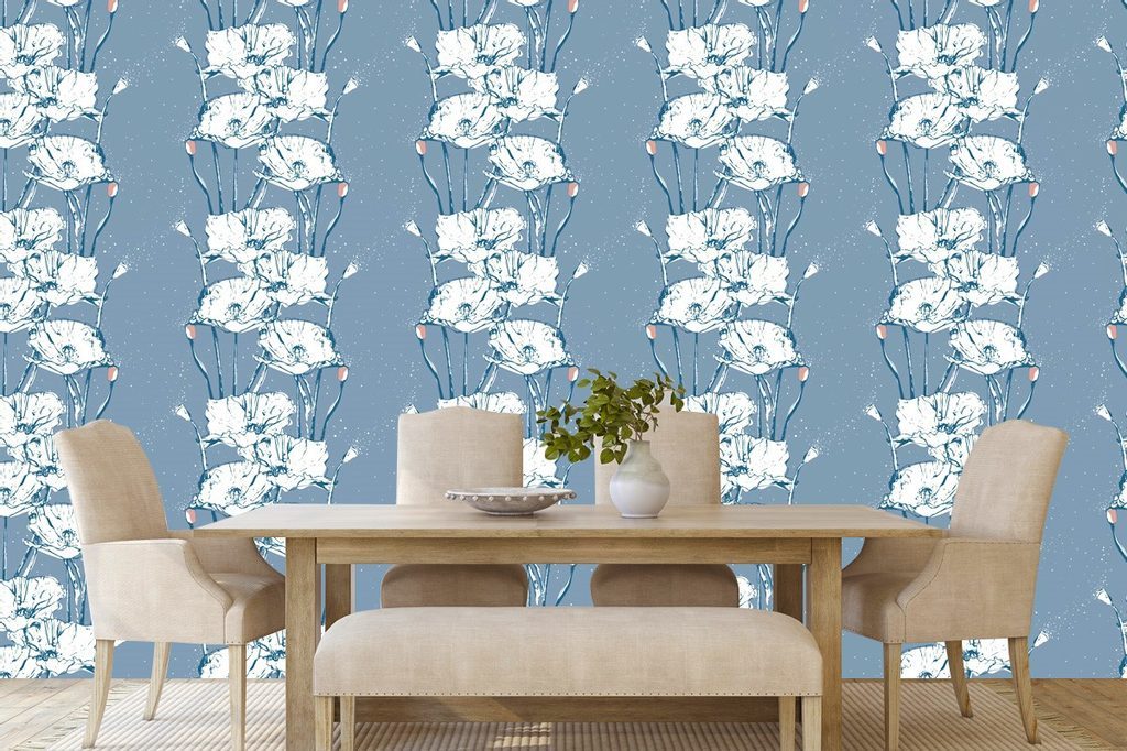 Samolepící tapeta květiny bílého máku s abstraktním pozadím