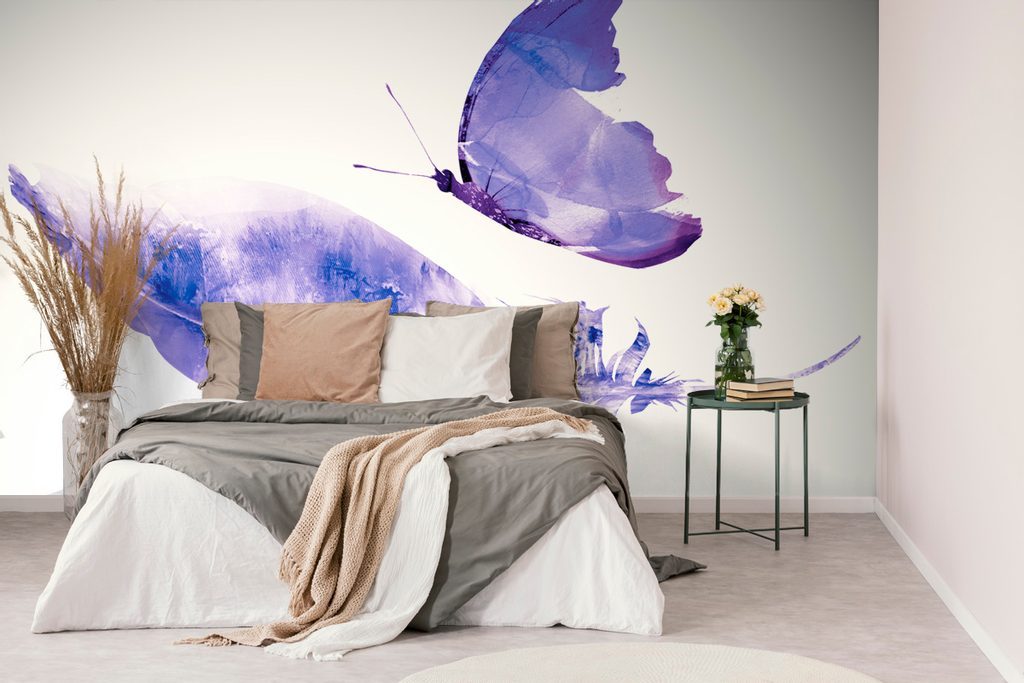 Tapeta fialový motýl s pírkem