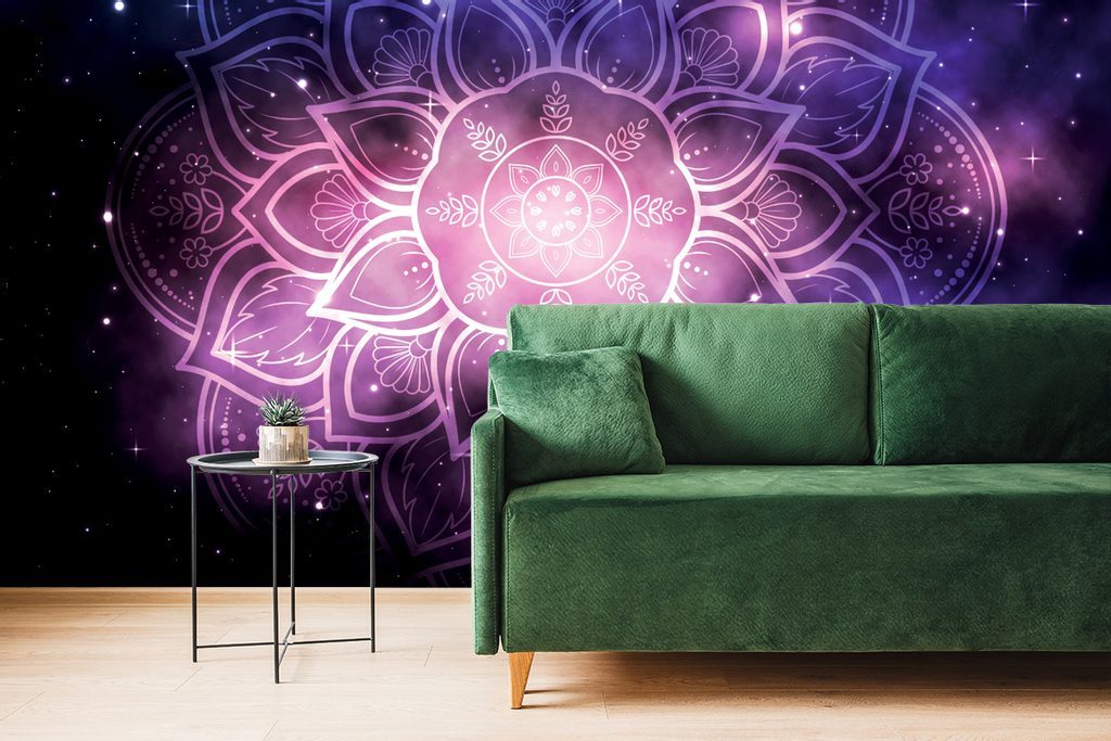 Samolepící tapeta něžná Mandala na modrém pozadí