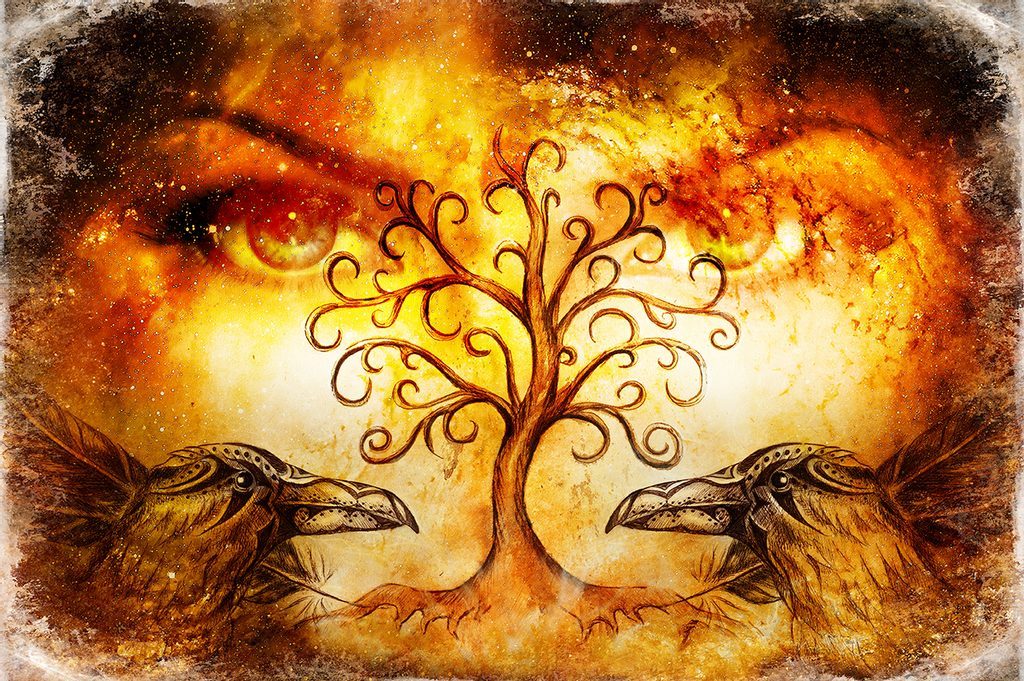 Tapeta havrani s bájným stromem života