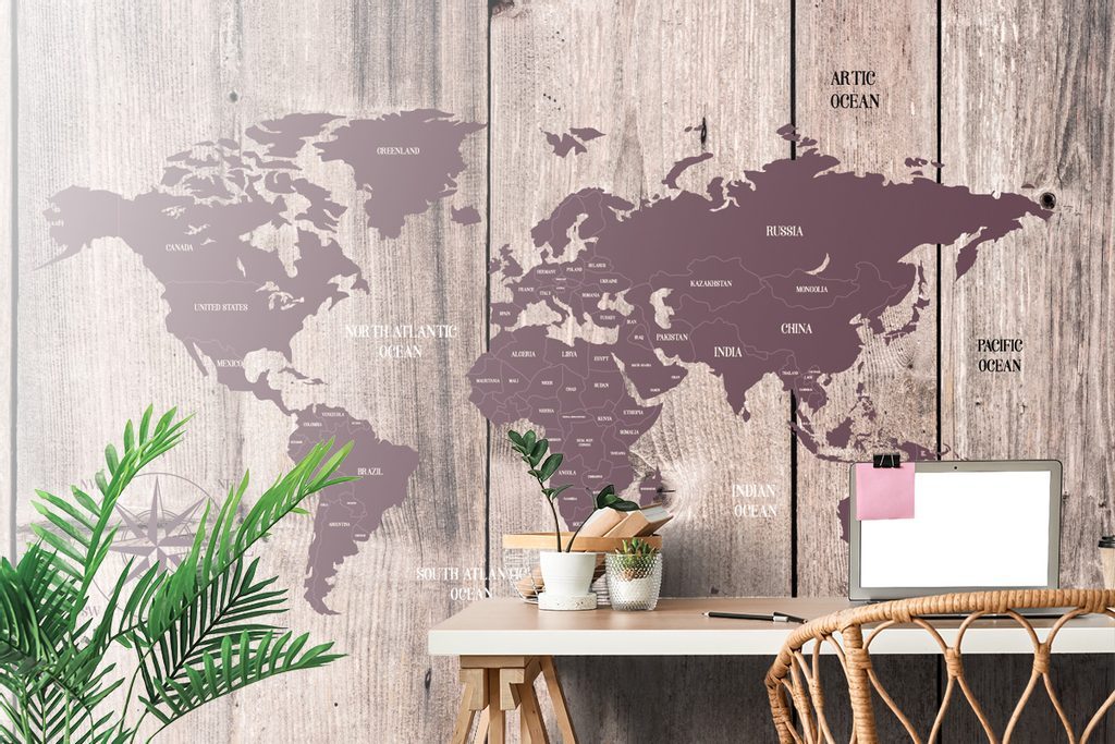 Tapeta hnědá mapa na dřevěném podkladu