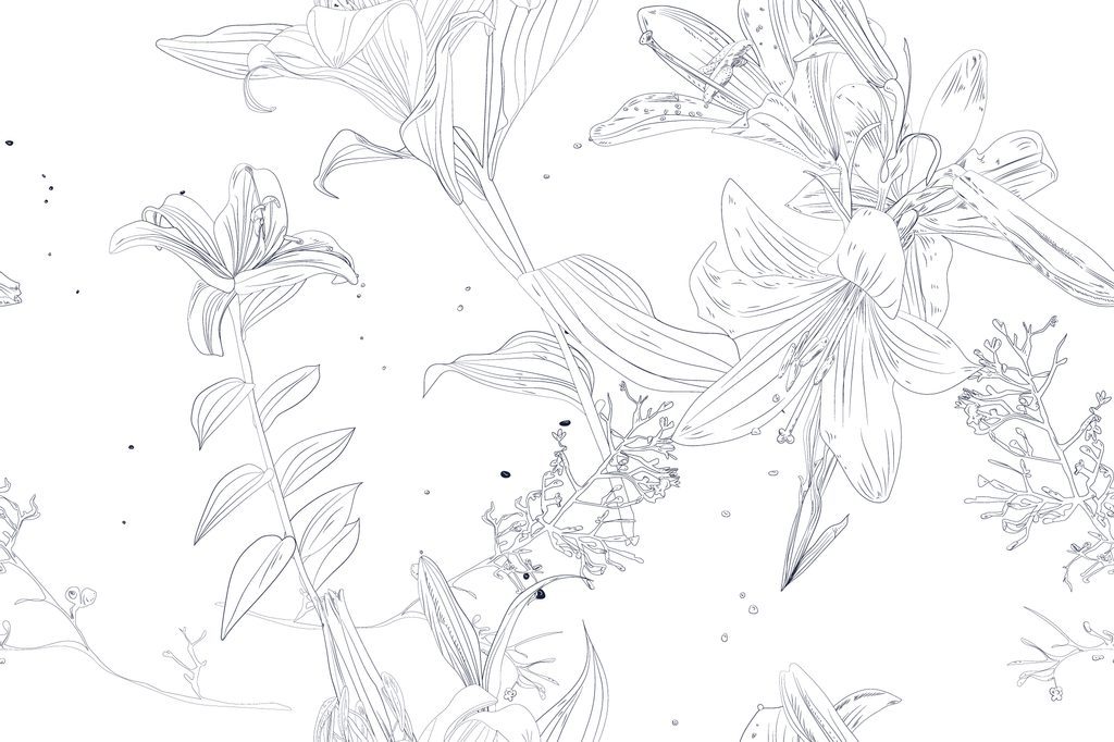 Samolepící tapeta malovaná kytice v černobílém provedení