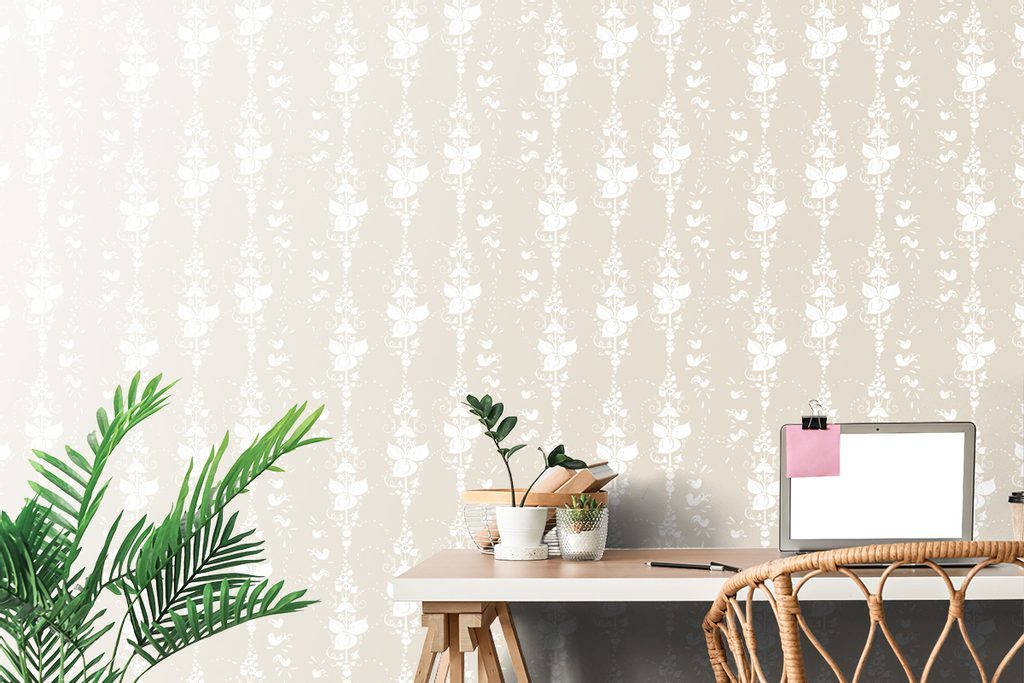 Role tapety obsahuje opakující se vzor, který na sebe plynule navazuje. Každá role má rozměr 49x1000 cm.