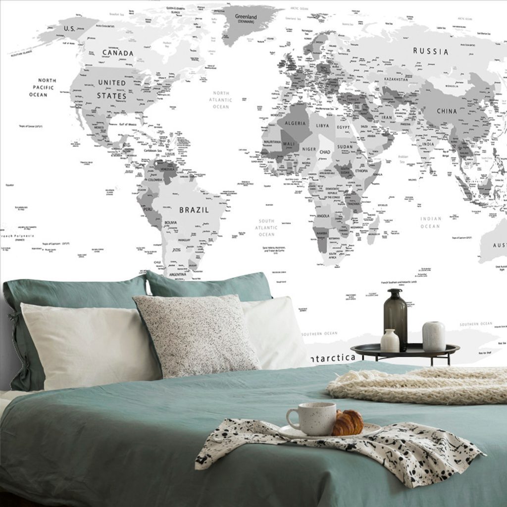 Samolepící tapeta přehledná mapa světa na bílém pozadí