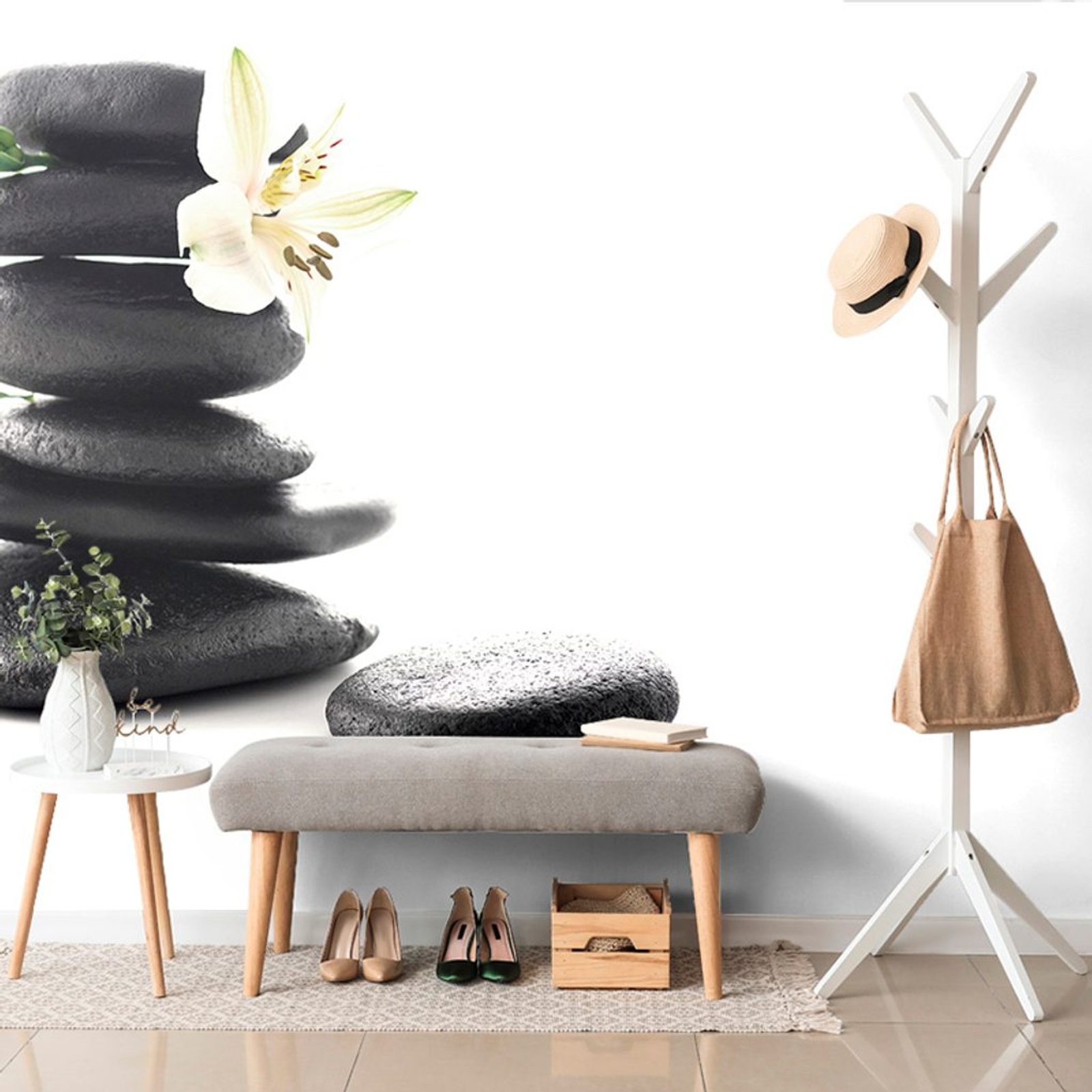 Tapeta kompozice lávových kamenů s květem