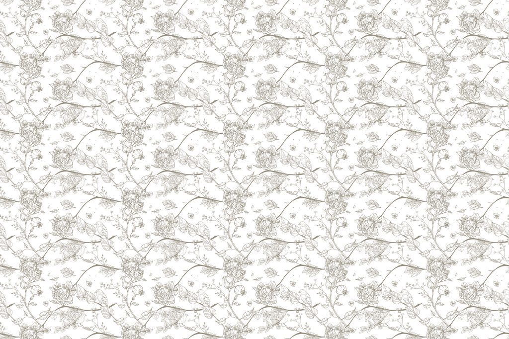 Samolepící tapeta černobílé růže s ornamentem ve vintage stylu