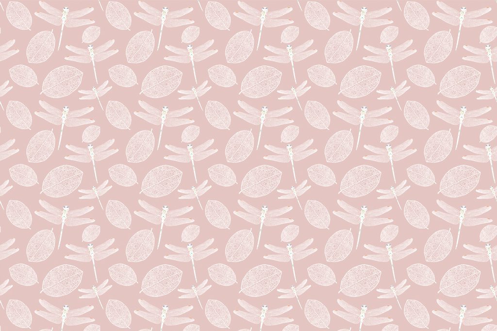 Tapeta létající vážky nad hladinou v růžovém provedení