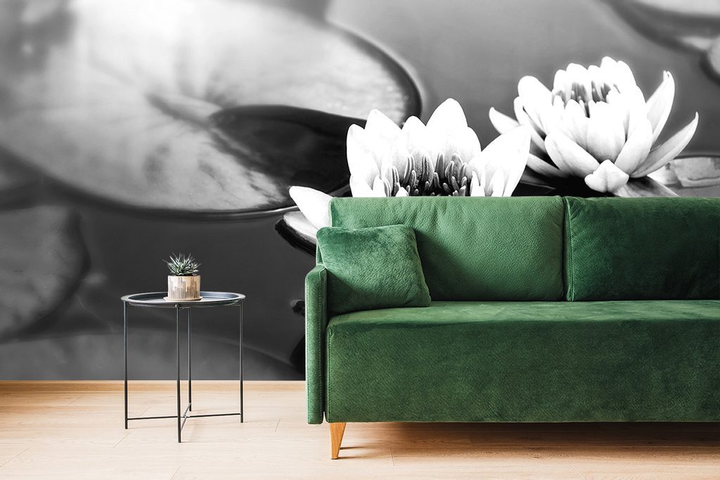 Tapeta lotosový květ na hladině v černobílém provedení