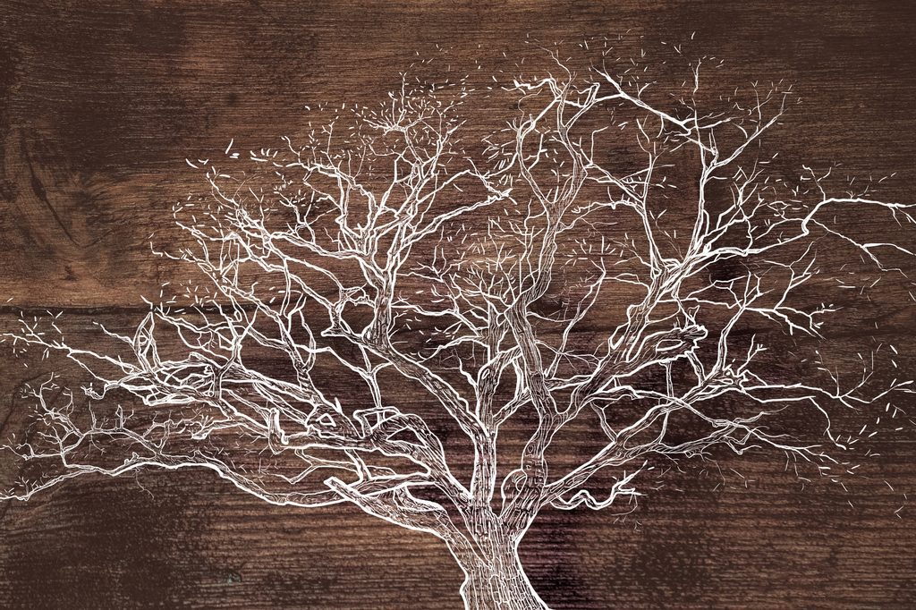 Tapeta majestátní koruna stromu na dřevěném pozadí