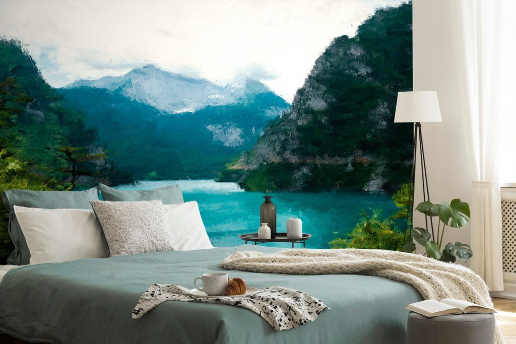 Tapeta malované tyrkysové jezero