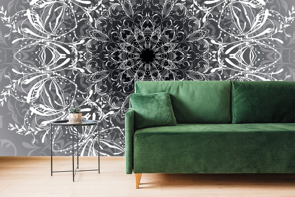 Samolepící tapeta černobílá Mandala v kouzelném provedení