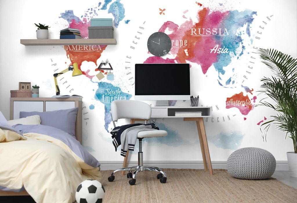 Samolepící tapeta moderní mapa světa na modrém pozadí