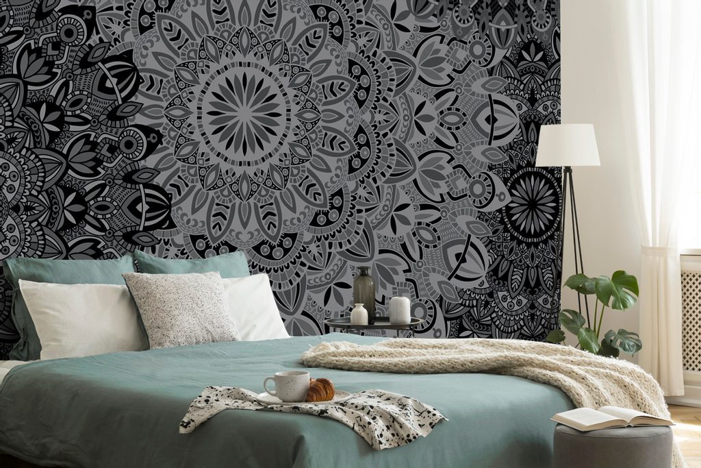 Tapeta nádherná vzorovaná Mandala v černobílém provedení