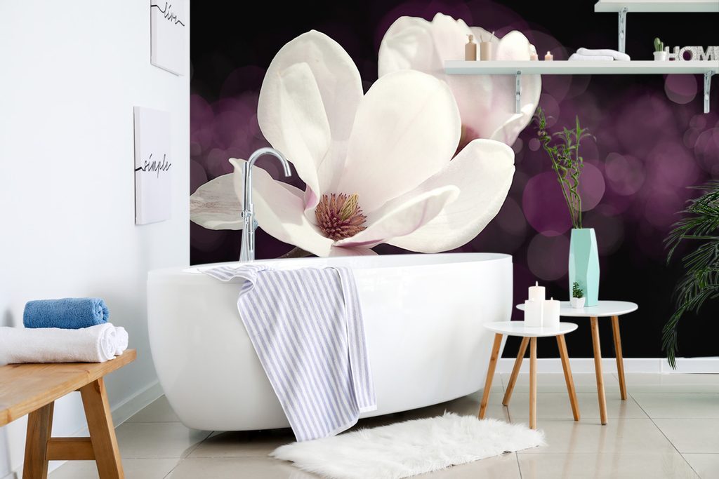 Samolepící tapeta fialové květiny na abstraktním pozadí