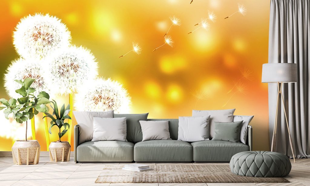 Samolepící tapeta neobyčejná pampeliška s fialovým pozadím