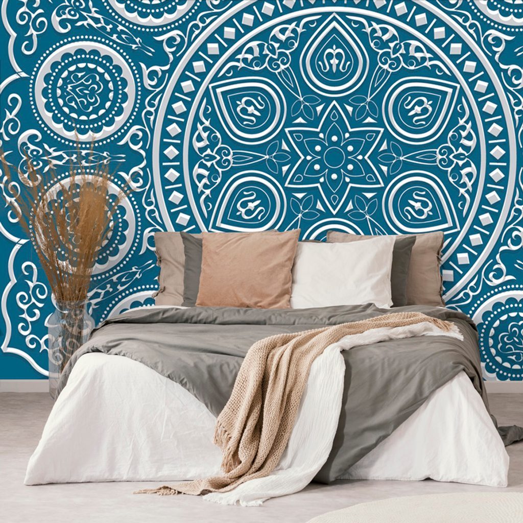 Tapeta něžná Mandala na modrém pozadí