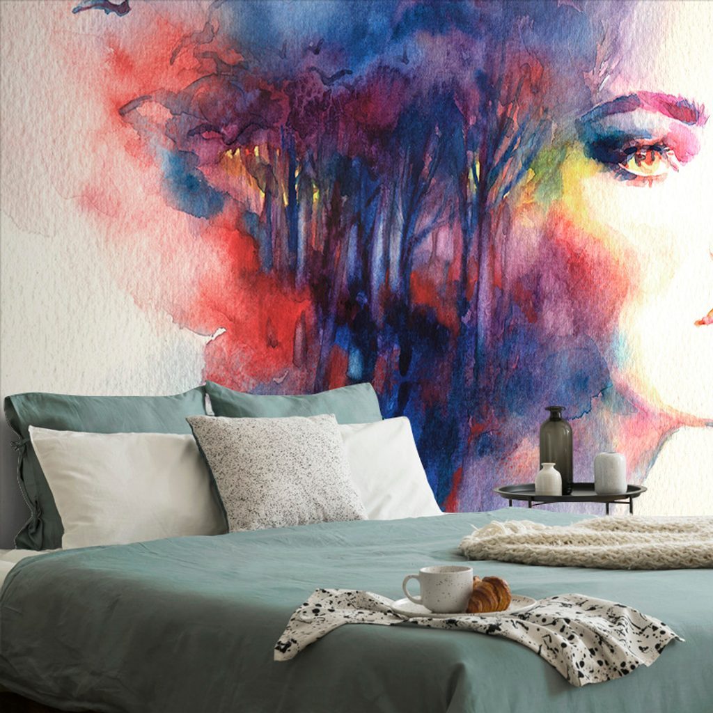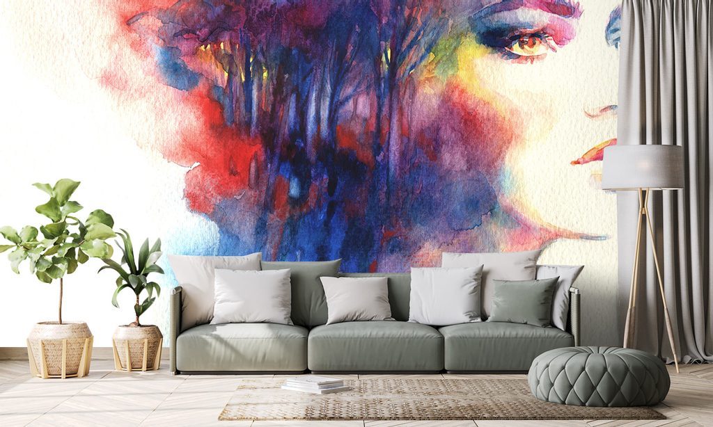 Tapeta černobílý portrét dámy v akvarelovém provedení