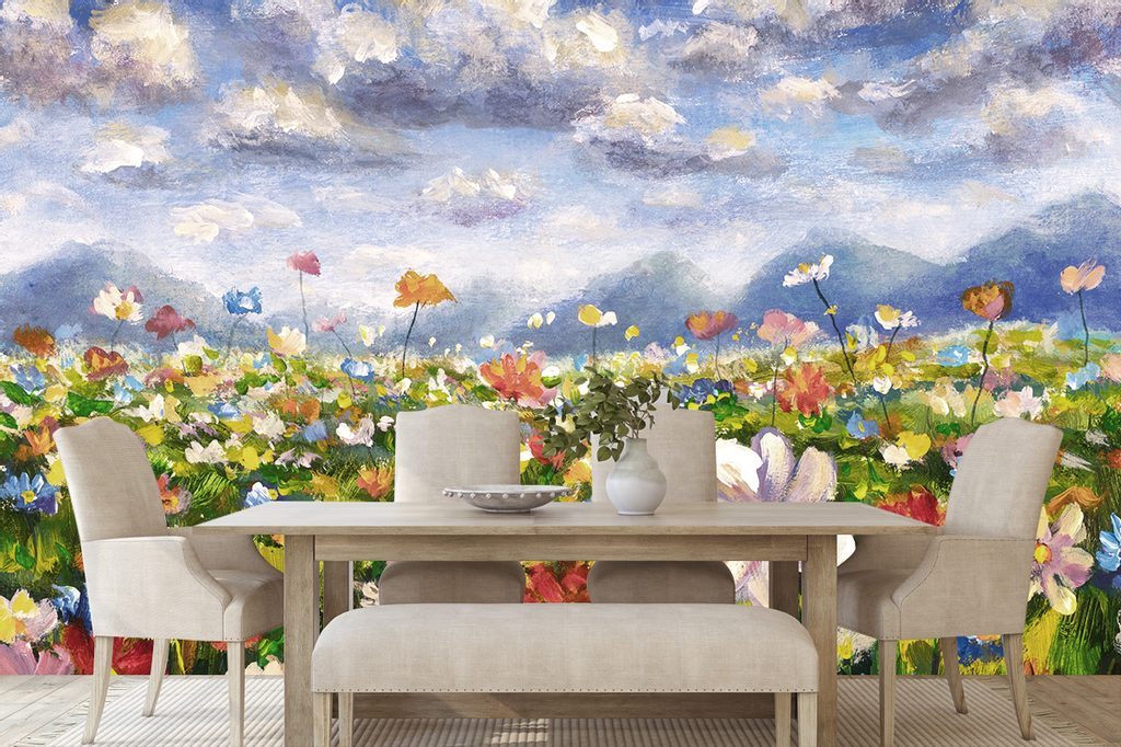 Tapeta olejomalba louky plné květin