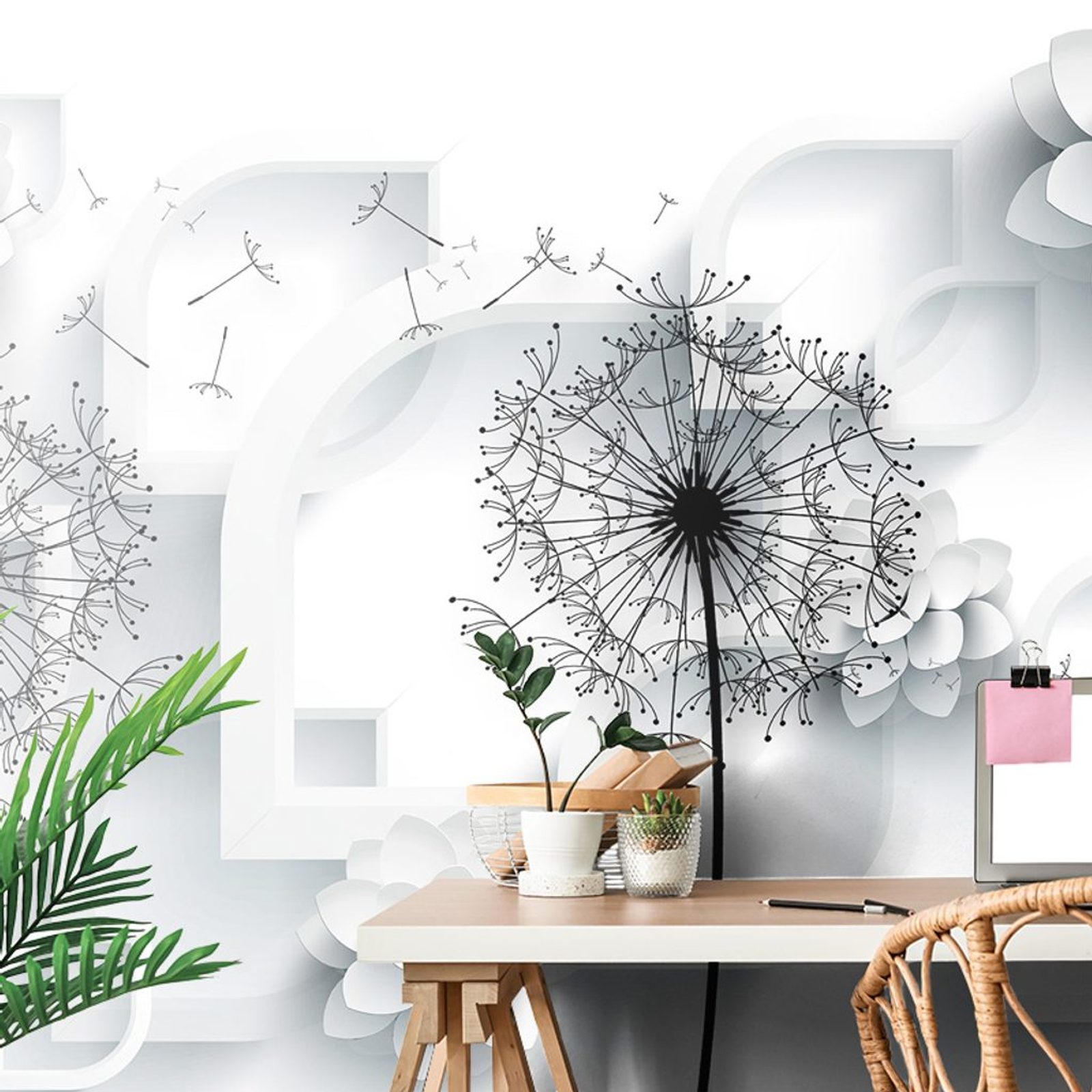 Tapeta černobílé nadýchané kloboučky pampelišky