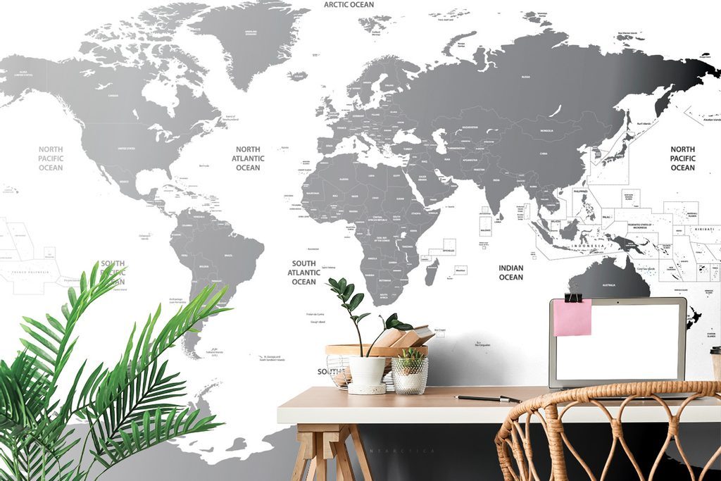 Samolepící tapeta podrobná mapa světa v oranžové barvě
