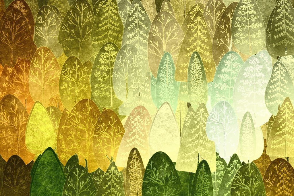 Tapeta pohádkově nesouměrné stromy