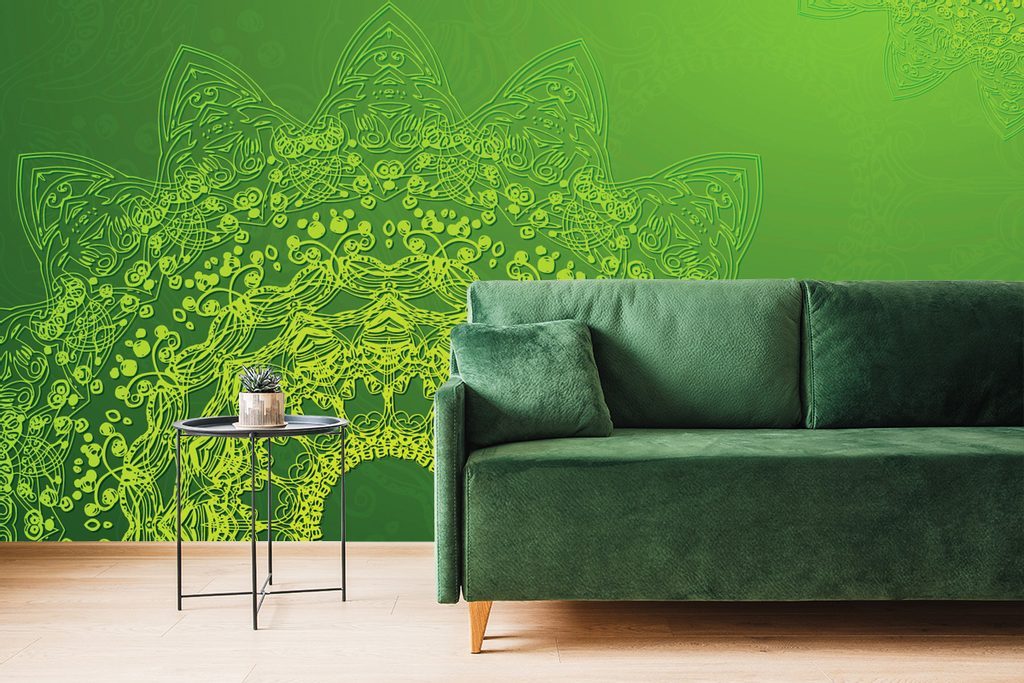 Tapeta zelená Mandala s abstraktními prvky