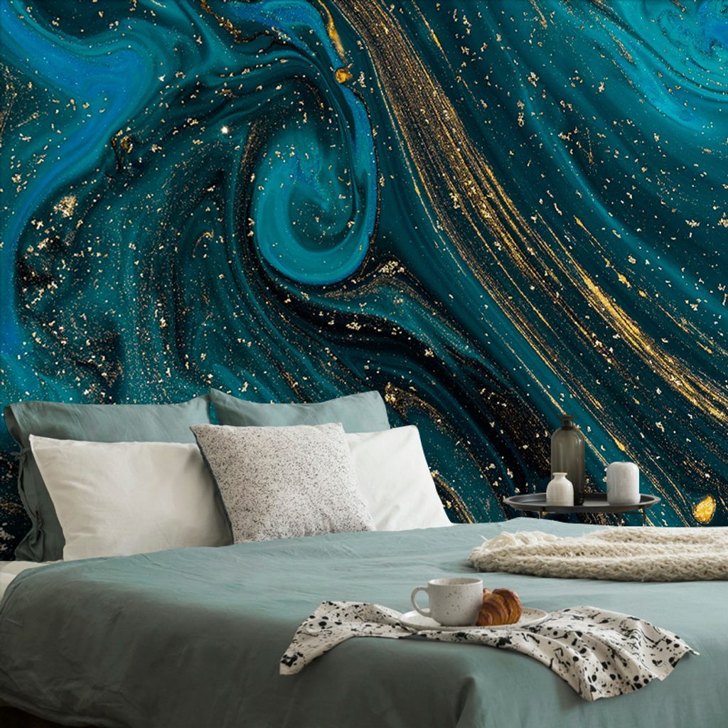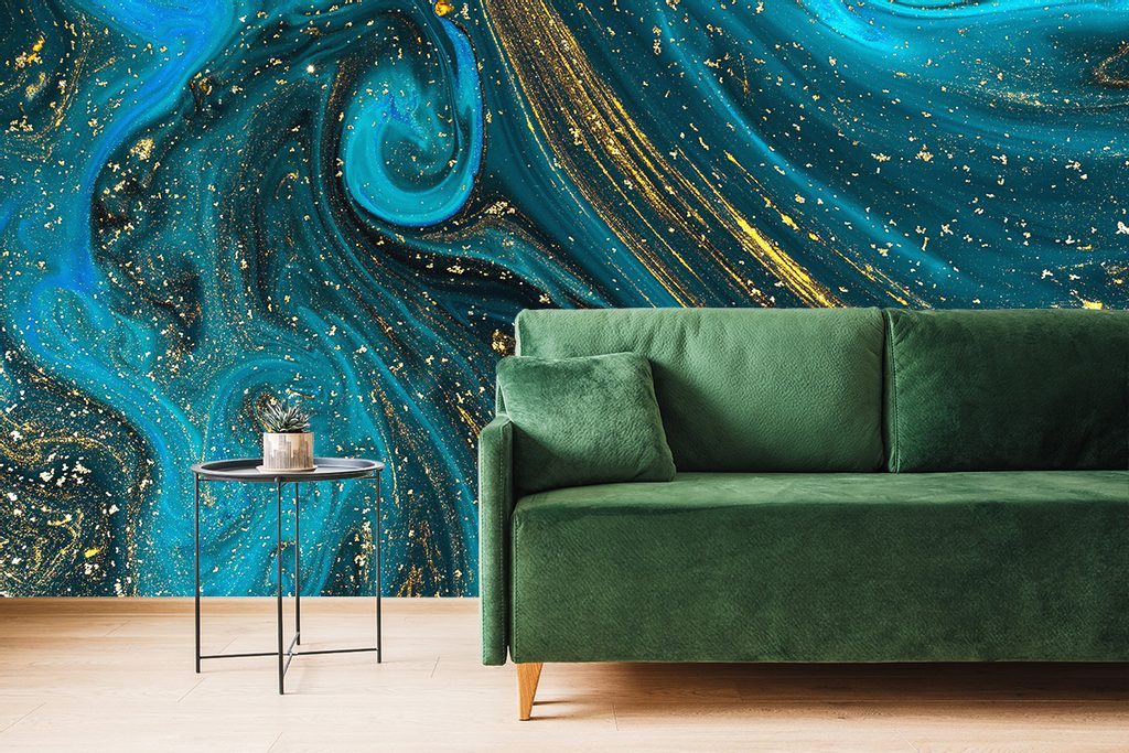 Tapeta smaragdově-zlatá směs barev