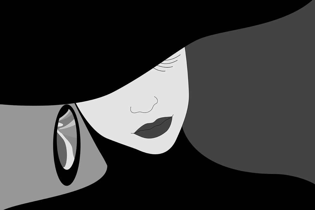 Tapeta tajemná žena v klobouku v černobílém provedení