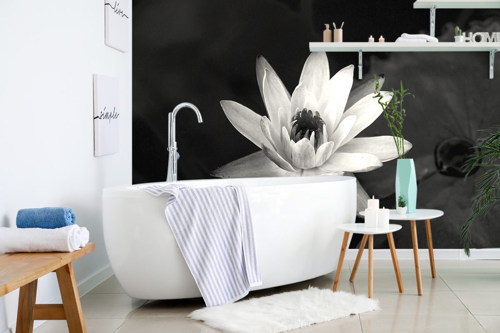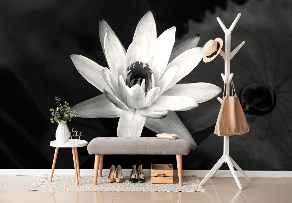 Samolepící tapeta zajímavé abstraktní květiny v černobílém provedení