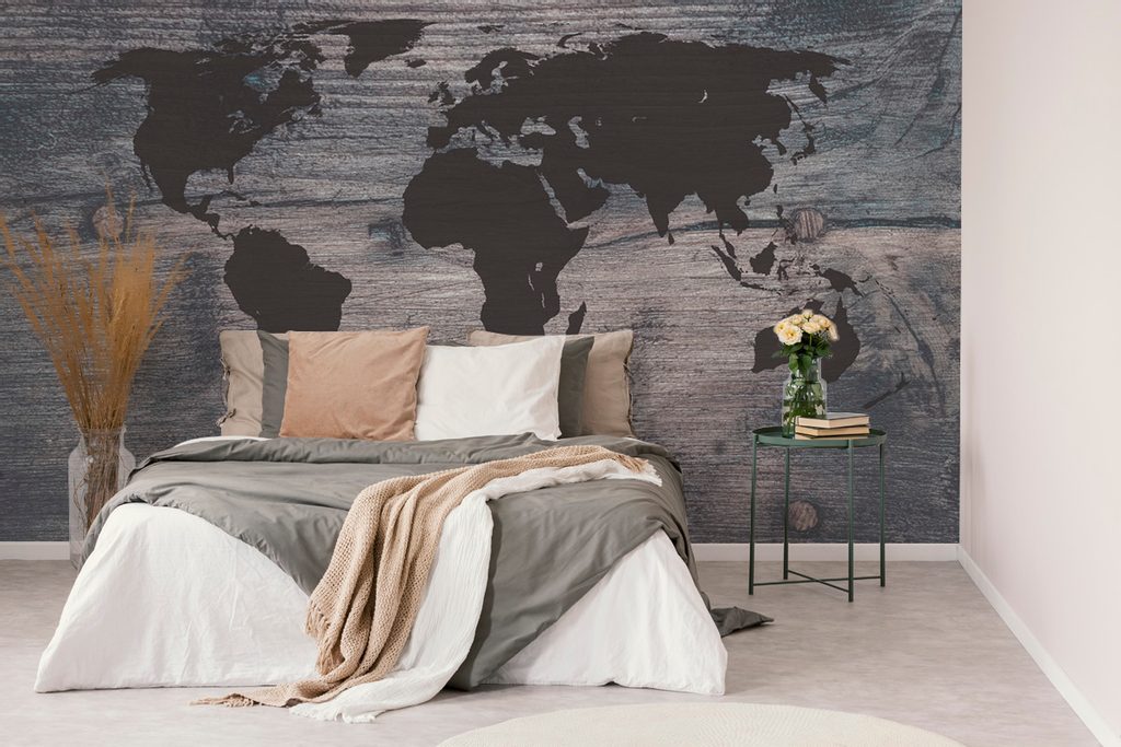 Samolepící tapeta podrobná mapa světa v šedé barvě