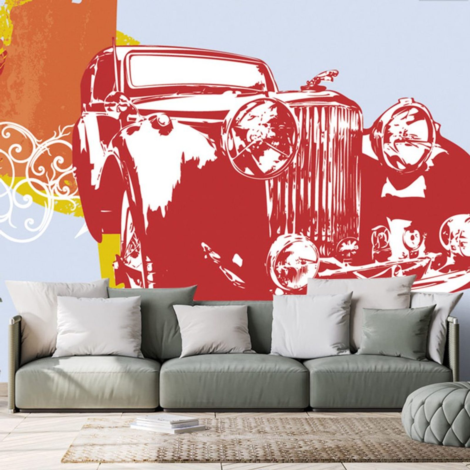 Samolepící tapeta černobílý veterán s abstraktním pozadím