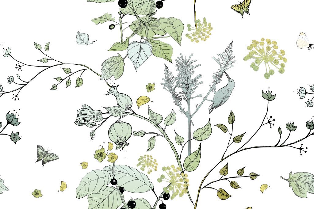 Tapeta větvičky keřů na světlém pozadí