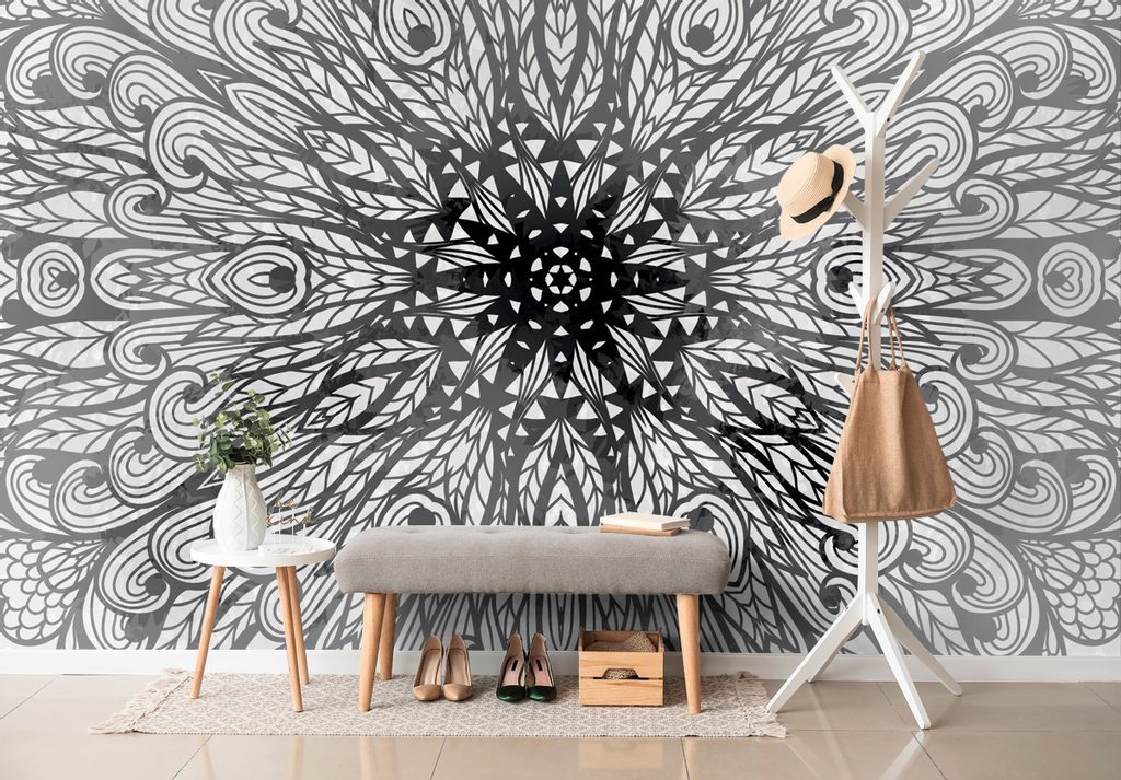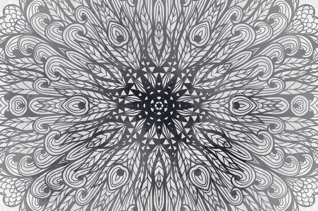 Tapeta obraz umělecká Mandala v černobílém provedení