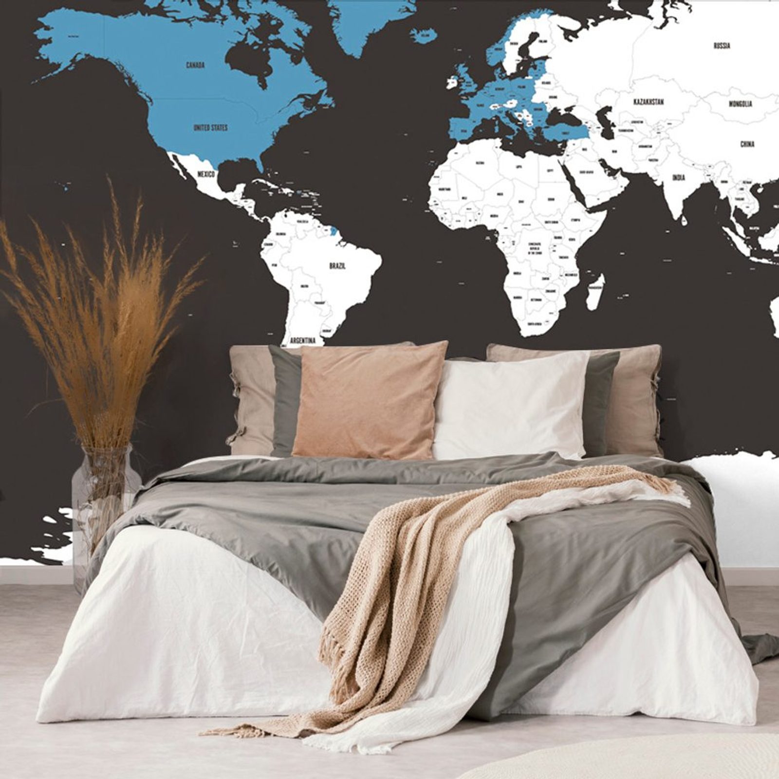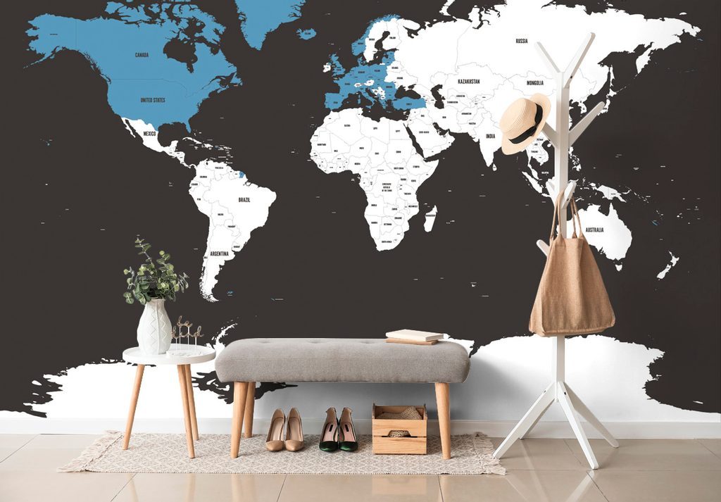 Samolepící tapeta moderní mapa světa na modrém pozadí