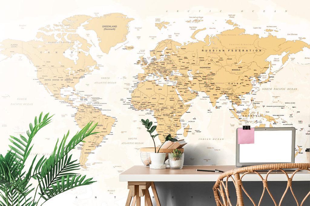Tapeta moderní mapa světa na dřevěném podkladu