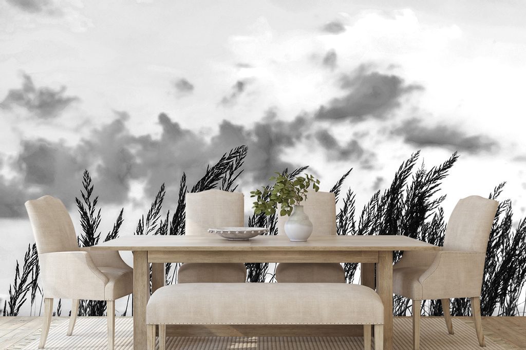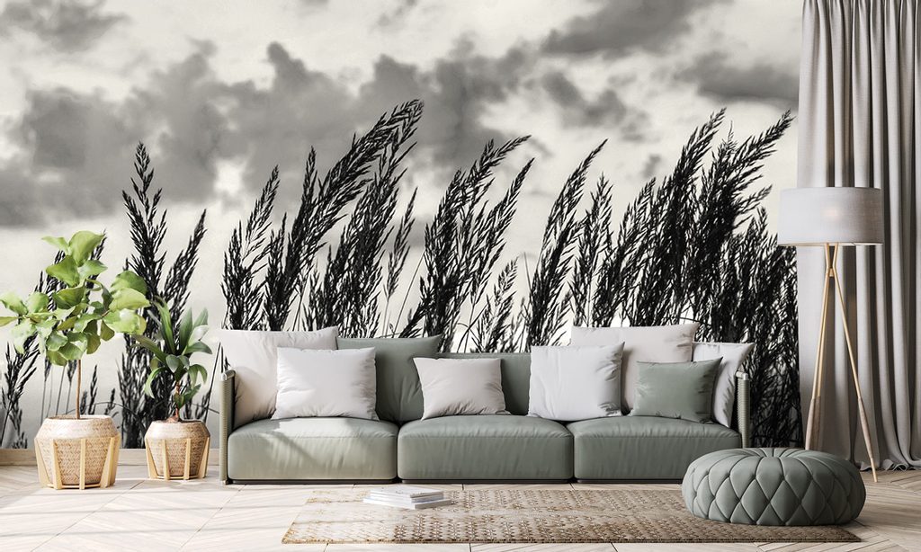 Zajímavá černobílá samolepící fototapeta stébla trávy