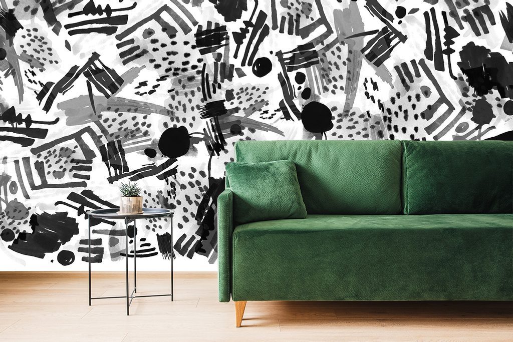 Zajímavá černobílá tapeta abstrakce v pop art stylu