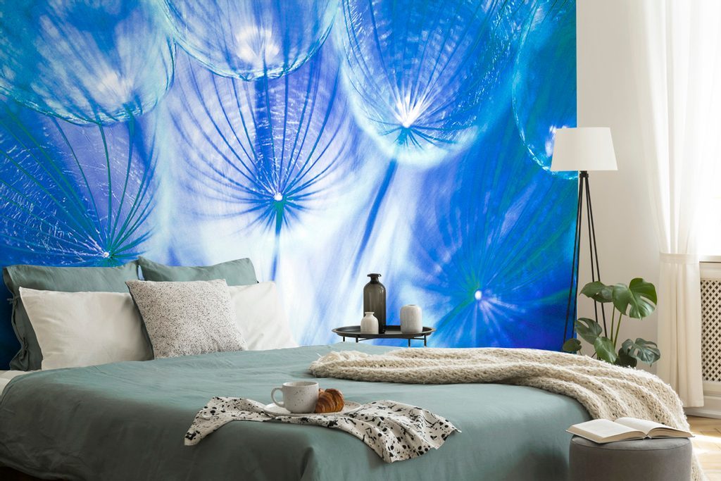 Zajímavá samolepící fototapeta modrá pampeliška